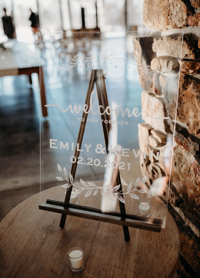 Acrylic Wedding Signage for Tables w/gold stand or wood stand